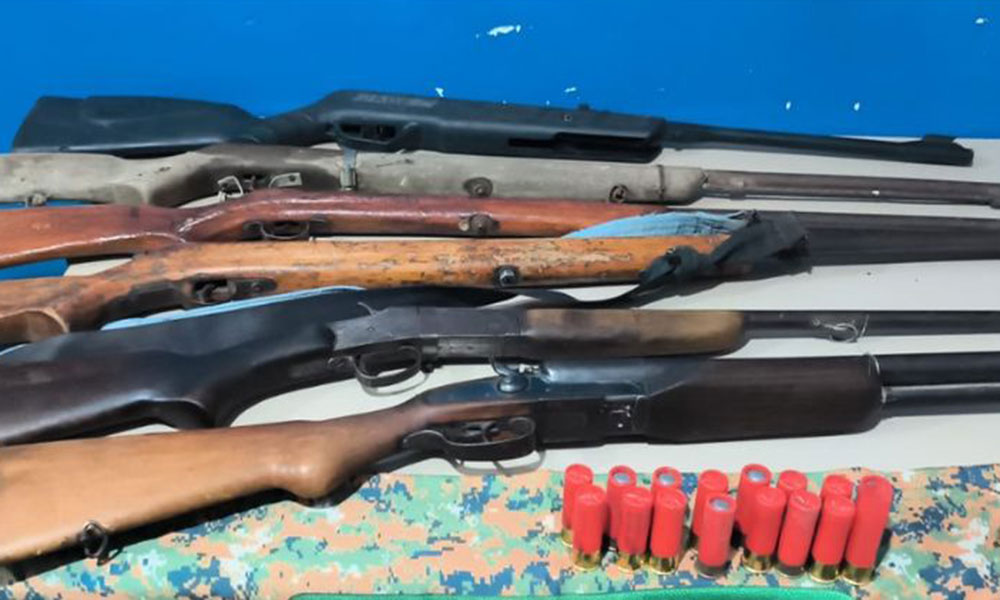 Com ele, foram apreendidos um revólver calibre 32, cinco espingardas, sendo três de fabricação caseira, uma de calibre 12 e outra de calibre 36, além de uma espingarda de pressão, munições de diversos calibres e mais de 6kg de carne de caça ilegal.
