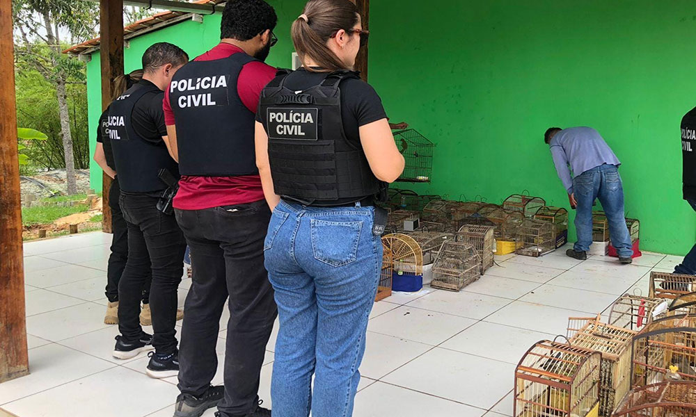 Um cativeiro de animais silvestres foi desmantelado na quarta-feira (26), na zona rural de Iguaí, no Sudoeste baiano. A ação integrada das Delegacias Territoriais de Ibicuí e Iguaí resultou também na autuação de três homens, apontados como responsáveis pela captura das aves e manutenção do local. As diligências avançaram até o distrito de Iguaibí, onde as equipes apuravam denúncias sobre um imóvel utilizado para o armazenamento e comércio ilegal de pássaros. Durante a incursão, os policiais civis localizaram diversas gaiolas contendo espécimes da fauna nativa mantidos sem a devida permissão, licença ou autorização do órgão competente.