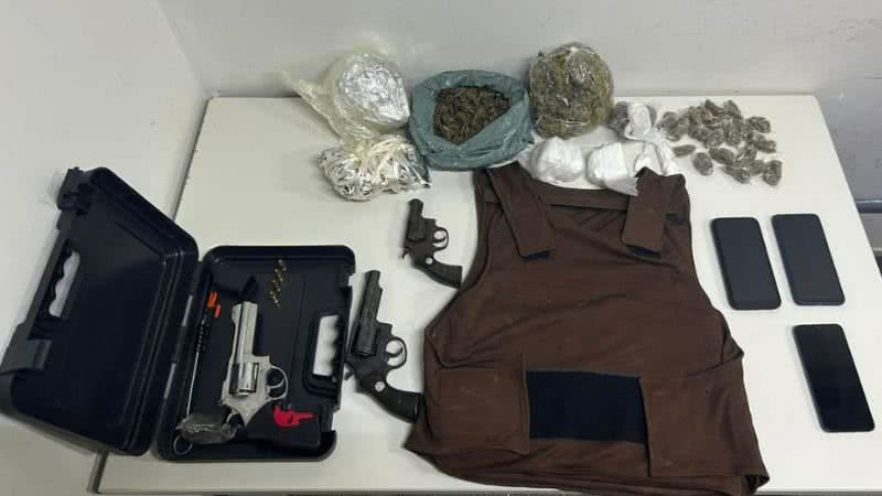 A ação resultou na apreensão de armas, drogas, colete balístico e uma motocicleta com chassi adulterado, possivelmente produto de furto/roubo.