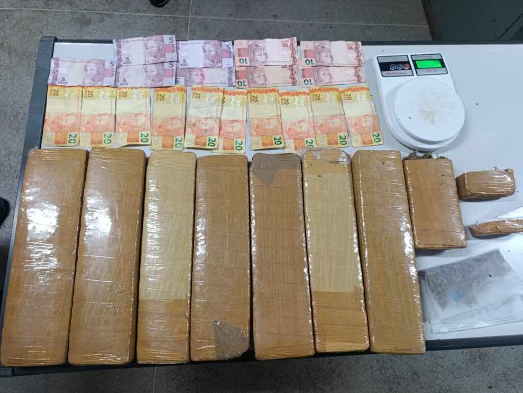 Na busca pessoal foram encontrados tabletes de substância análoga à maconha. No apartamento de onde o suspeito havia saído, os policiais localizaram mais entorpecentes e material relacionado ao tráfico.
